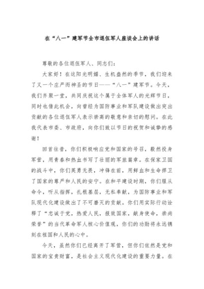 / 【七哥公文】2024年:在“八一”建军节全市退伍军人座谈会上的讲话+更多免费公文+VX:QiGeGongWen2024