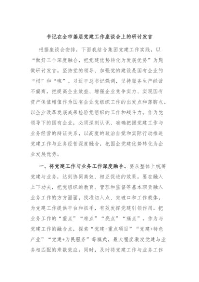 / 【七哥公文】2024年:书记在全市基层党建工作座谈会上的研讨发言+更多免费公文+VX:QiGeGongWen2024