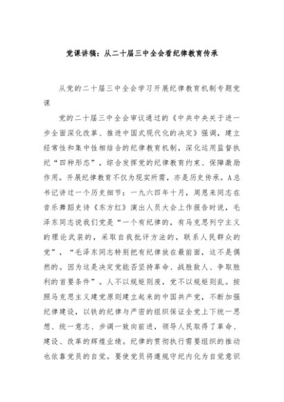 / 【七哥公文】2024年:党课讲稿:从二十届三中全会看纪律教育传承+更多免费公文+VX:QiGeGongWen2024