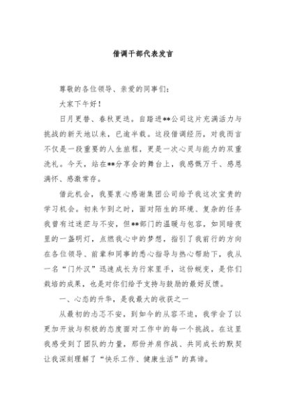 【七哥公文】2024年:借调干部代表发言+更多免费公文+VX:QiGeGongWen2024