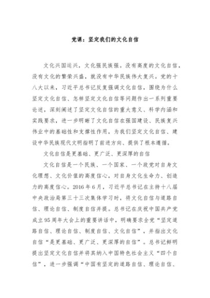 / 【七哥公文】2024年:党课:坚定我们的文化自信+更多免费公文+VX:QiGeGongWen2024