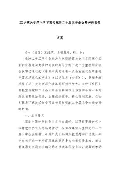 【七哥公文】2024年:XX乡镇关于深入学习贯彻党的二十届三中全会精神的宣传方案+更多免费公文+VX:QiGeGongWen2024
