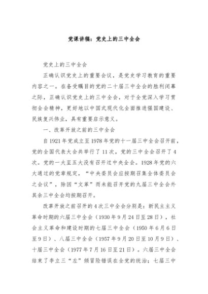 / 【七哥公文】2024年:党课讲稿:党史上的三中全会+更多免费公文+VX:QiGeGongWen2024