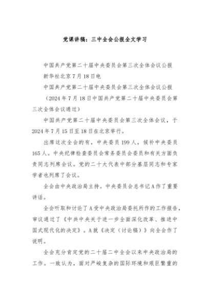 / 【七哥公文】2024年:党课讲稿:三中全会公报全文学习+更多免费公文+VX:QiGeGongWen2024