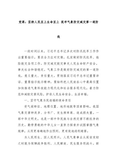 【七哥公文】2024年:党课:坚持人民至上生命至上 筑牢气象防灾减灾第一道防线+更多免费公文+VX:QiGeGongWen2024
