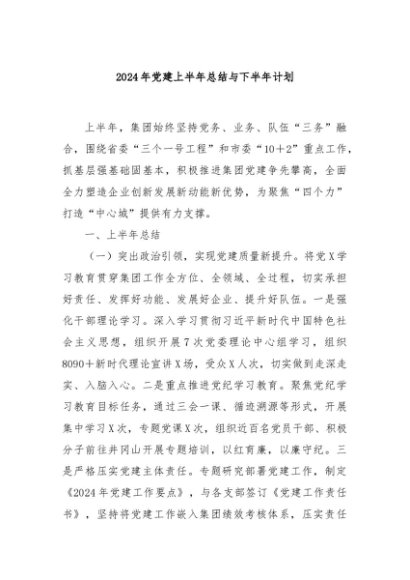 / 【七哥公文】2024年:2024年党建上半年总结与下半年计划+更多免费公文+VX:QiGeGongWen2024