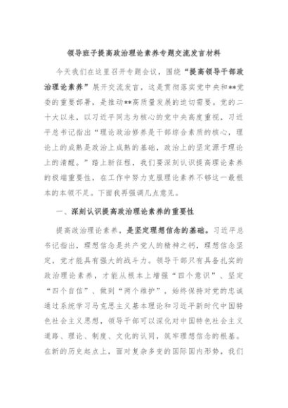 / 【七哥公文】2024年:领导班子提高政治理论素养专题交流发言材料+更多免费公文+VX:QiGeGongWen2024