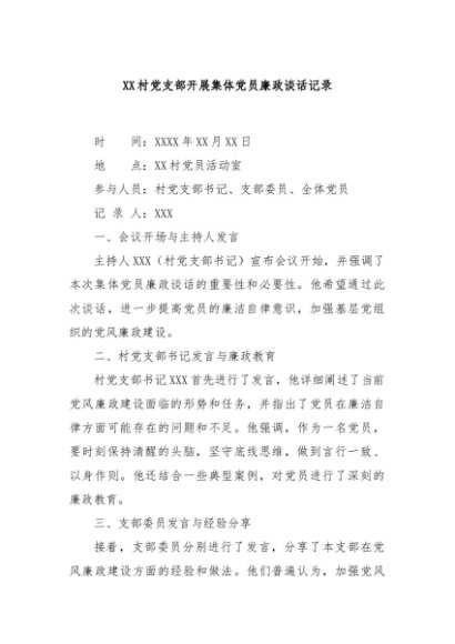 / 【七哥公文】2024年:XX村党支部开展集体党员廉政谈话记录+更多免费公文+VX:QiGeGongWen2024