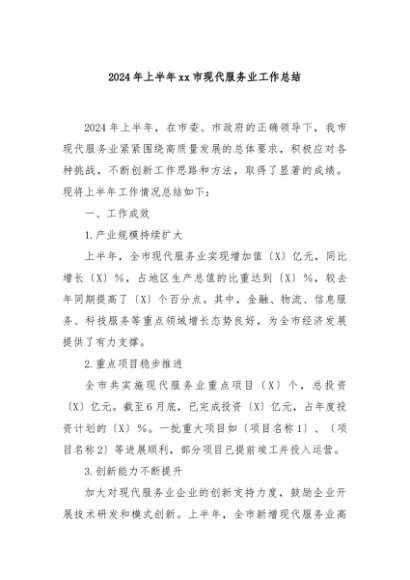 / 【七哥公文】2024年:2024年上半年xx市现代服务业工作总结+更多免费公文+VX:QiGeGongWen2024