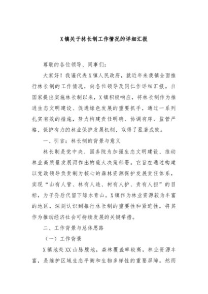 / 【七哥公文】2024年:X镇关于林长制工作情况的详细汇报+更多免费公文+VX:QiGeGongWen2024