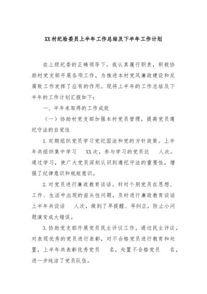 / 【七哥公文】2024年:XX村纪检委员上半年工作总结及下半年工作计划+更多免费公文+VX:QiGeGongWen2024