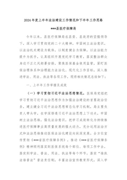 【七哥公文】2024年:2024年度上半年法治建设工作情况和下半年工作思路+更多免费公文+VX:QiGeGongWen2024