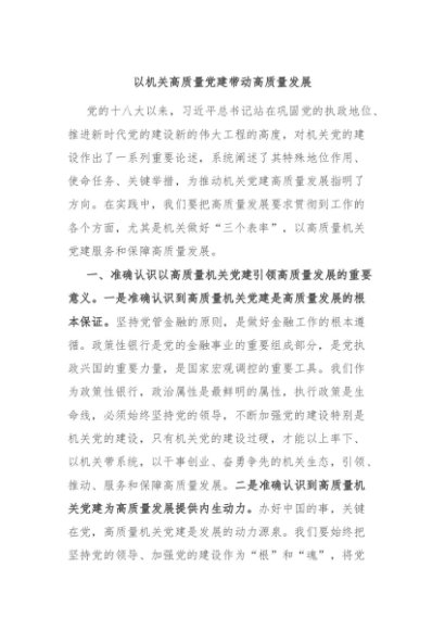 / 【七哥公文】2024年:以机关高质量党建带动高质量发展+更多免费公文+VX:QiGeGongWen2024