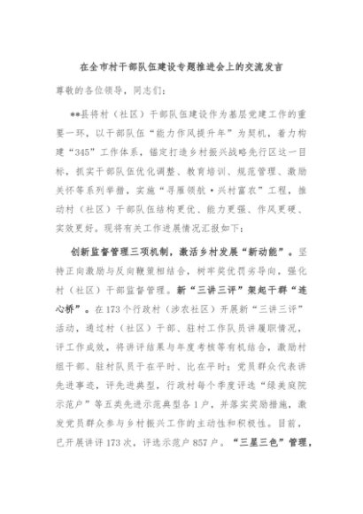 【七哥公文】2024年:在全市村干部队伍建设专题推进会上的交流发言 (1)+更多免费公文+VX:QiGeGongWen2024