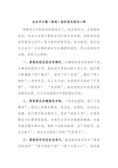 【七哥公文】2024年:在全市乡镇(街道)组织委员培训心得+更多免费公文+VX:QiGeGongWen2024