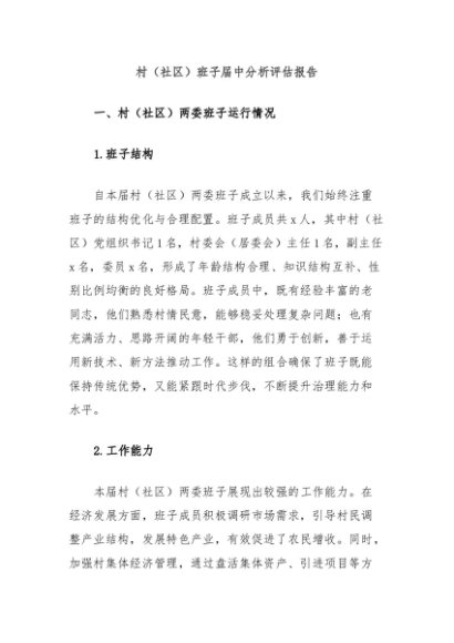 / 【七哥公文】2024年:村(社区)班子届中分析评估报告+更多免费公文+VX:QiGeGongWen2024