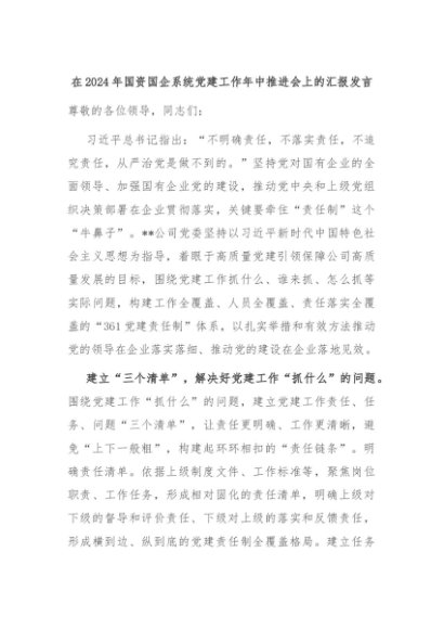 【七哥公文】2024年:在2024年国资国企系统党建工作年中推进会上的汇报发言+更多免费公文+VX:QiGeGongWen2024