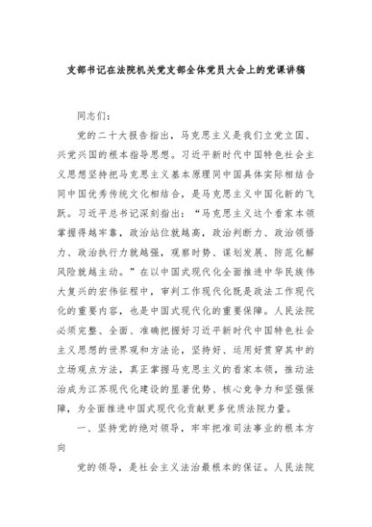 / 【七哥公文】2024年:支部书记在法院机关党支部全体党员大会上的党课讲稿+更多免费公文+VX:QiGeGongWen2024