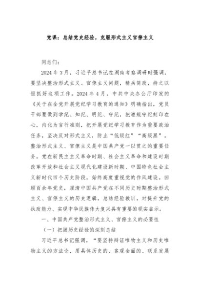 / 【七哥公文】2024年:党课:总结党史经验,克服形式主义官僚主义+更多免费公文+VX:QiGeGongWen2024