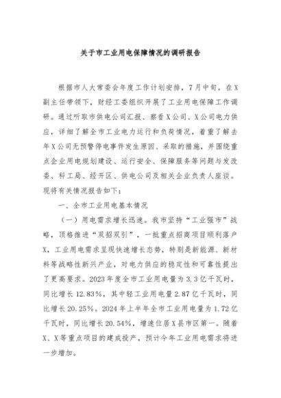 / 【七哥公文】2024年:关于市工业用电保障情况的调研报告+更多免费公文+VX:QiGeGongWen2024