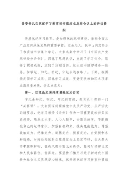 【七哥公文】2024年:县委书记在党纪学习教育读书班结业总结会议上的讲话提纲+更多免费公文+VX:QiGeGongWen2024