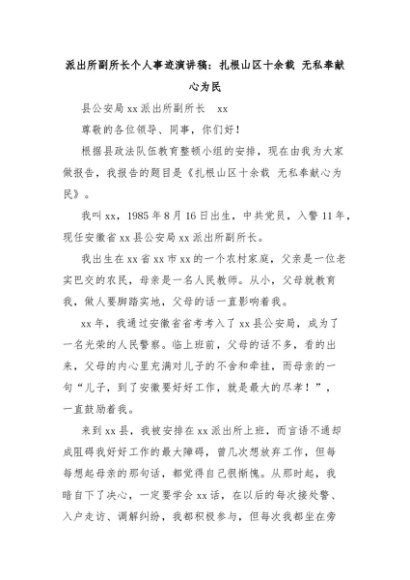 【七哥公文】2024年:派出所副所长个人事迹演讲稿:扎根山区十余载 无私奉献心为民+更多免费公文+VX:QiGeGongWen2024