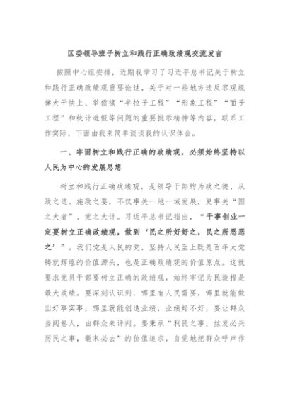 / 【七哥公文】2024年:区委领导班子树立和践行正确政绩观交流发言+更多免费公文+VX:QiGeGongWen2024