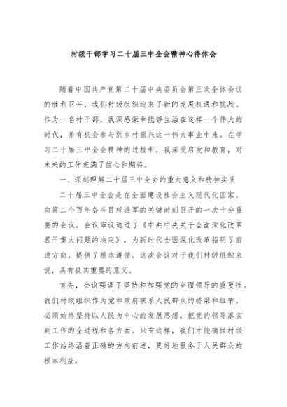 / 【七哥公文】2024年:村级干部学习二十届三中全会精神心得体会+更多免费公文+VX:QiGeGongWen2024