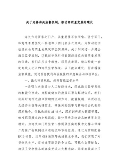 / 【七哥公文】2024年:关于完善海关监督机制,推动高质量发展的建议+更多免费公文+VX:QiGeGongWen2024