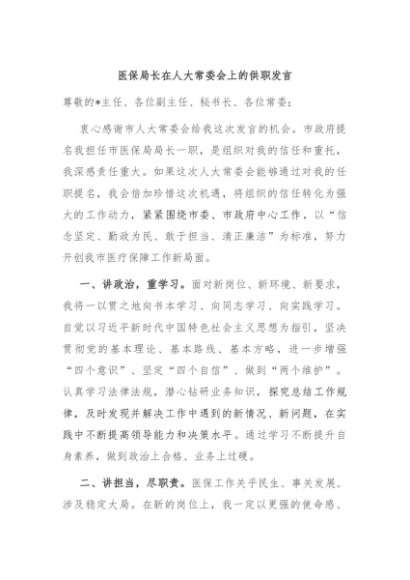 【七哥公文】2024年:医保局长在人大常委会上的供职发言+更多免费公文+VX:QiGeGongWen2024