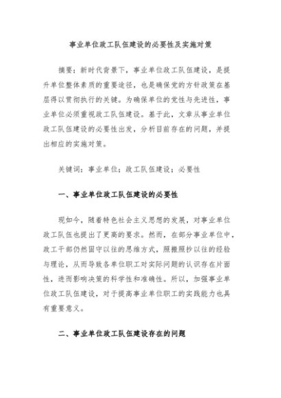 / 【七哥公文】2024年:事业单位政工队伍建设的必要性及实施对策+更多免费公文+VX:QiGeGongWen2024