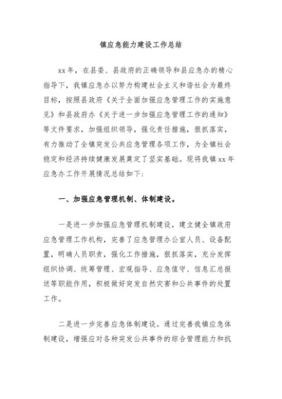 / 【七哥公文】2024年:镇应急能力建设工作总结+更多免费公文+VX:QiGeGongWen2024