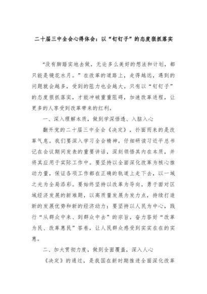 【七哥公文】2024年:二十届三中全会心得体会:以“钉钉子”的态度狠抓落实+更多免费公文+VX:QiGeGongWen2024