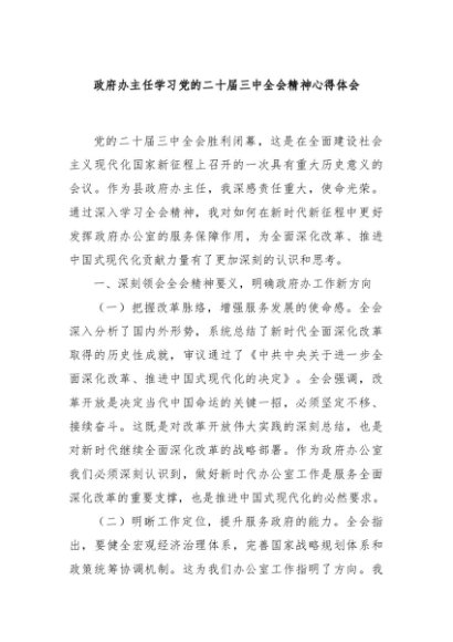 / 【七哥公文】2024年:政府办主任学习党的二十届三中全会精神心得体会+更多免费公文+VX:QiGeGongWen2024