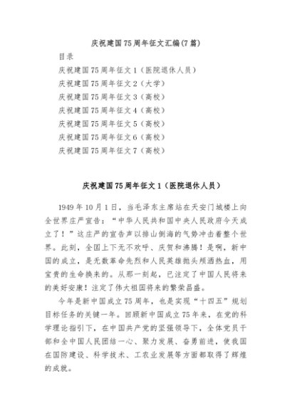 / 【七哥公文】2024年:(7篇)庆祝建国75周年征文汇编+更多免费公文+VX:QiGeGongWen2024