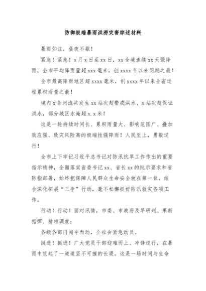 / 【七哥公文】2024年:防御极端暴雨洪涝灾害综述材料+更多免费公文+VX:QiGeGongWen2024