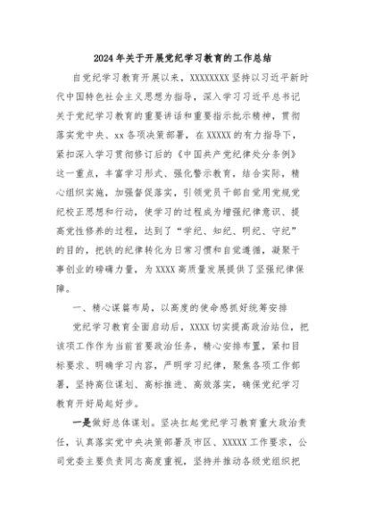 / 【七哥公文】2024年:2024年关于开展党纪学习教育的工作总结+更多免费公文+VX:QiGeGongWen2024