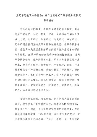 【七哥公文】2024年:党纪学习教育心得体会:做“方志敏式”的学纪知纪明纪守纪模范+更多免费公文+VX:QiGeGongWen2024