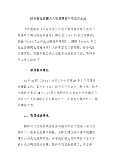 / 【七哥公文】2024年:15分钟生活圈文化项目建设半年工作总结+更多免费公文+VX:QiGeGongWen2024