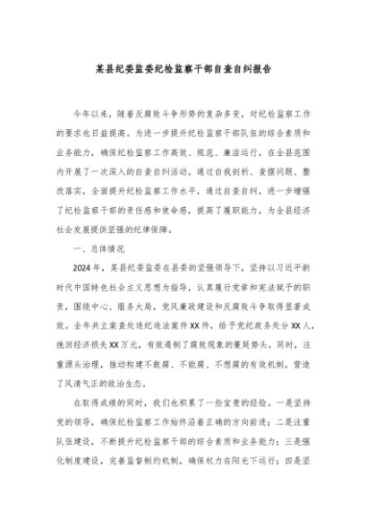 / 【七哥公文】2024年:某县纪委监委纪检监察干部自查自纠报告+更多免费公文+VX:QiGeGongWen2024