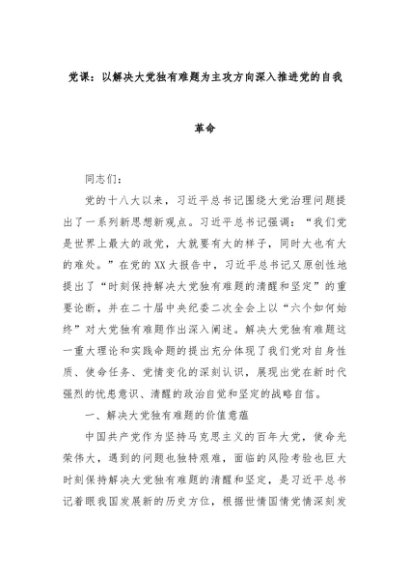 【七哥公文】2024年:党课:以解决大党独有难题为主攻方向深入推进党的自我革命+更多免费公文+VX:QiGeGongWen2024