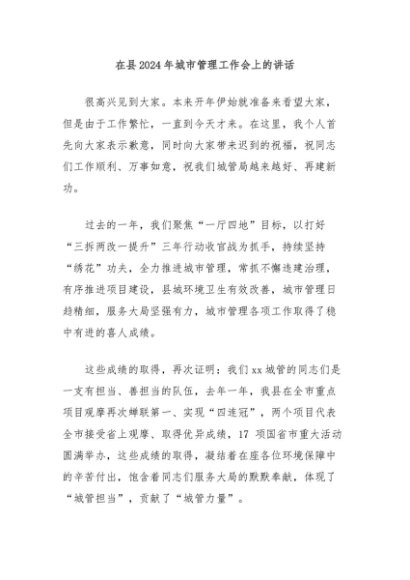 / 【七哥公文】2024年:在县2024年城市管理工作会上的讲话+更多免费公文+VX:QiGeGongWen2024