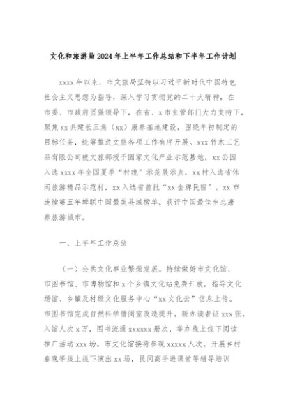 【七哥公文】2024年:文化和旅游局2024年上半年工作总结和下半年工作计划+更多免费公文+VX:QiGeGongWen2024