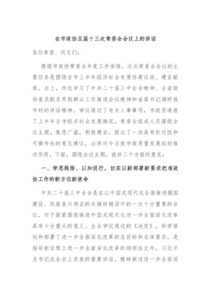 / 【七哥公文】2024年:在市政协五届十三次常委会会议上的讲话+更多免费公文+VX:QiGeGongWen2024