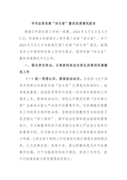 / 【七哥公文】2024年:市司法局巡察“回头看”整改进展情况报告+更多免费公文+VX:QiGeGongWen2024
