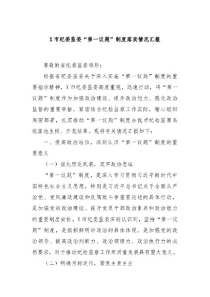 / 【七哥公文】2024年:X市纪委监委“第一议题”制度落实情况汇报+更多免费公文+VX:QiGeGongWen2024