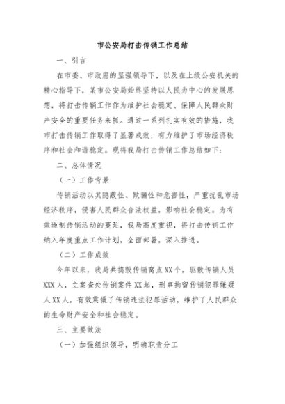 / 【七哥公文】2024年:市公安局打击传销工作总结+更多免费公文+VX:QiGeGongWen2024