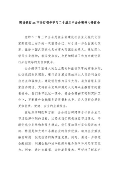 【七哥公文】2024年:建设银行xx市分行领导学习二十届三中全会精神心得体会+更多免费公文+VX:QiGeGongWen2024