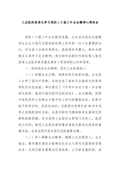 / 【七哥公文】2024年:工业经济局局长学习党的二十届三中全会精神心得体会+更多免费公文+VX:QiGeGongWen2024