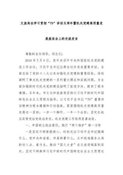 【七哥公文】2024年:文旅局在学习贯彻“79”讲话五周年暨机关党建高质量发展座谈会上的交流发言+更多免费公文+VX:QiGeGongWen2024
